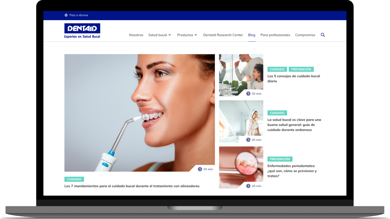 Por ello en Dentaid buscamos mejorar la salud bucal a partir de la educación, la investigación y el desarrollo de nuevas soluciones y productos. Porque la clave está en avanzar hacia el concepto de “cuidar nuestra boca”.